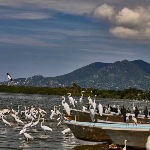 San Pedro de las Playas, fotos de cientos de aves marinas. Pueblo pesquero cerca de Acapulco. Fotos de L.Pazos.